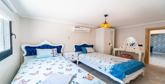 3. Yatak Odası : 2 adet tek kişilik yatak,klima,komodin,makyaj masası ve elbise dolabı bulunmaktadır.