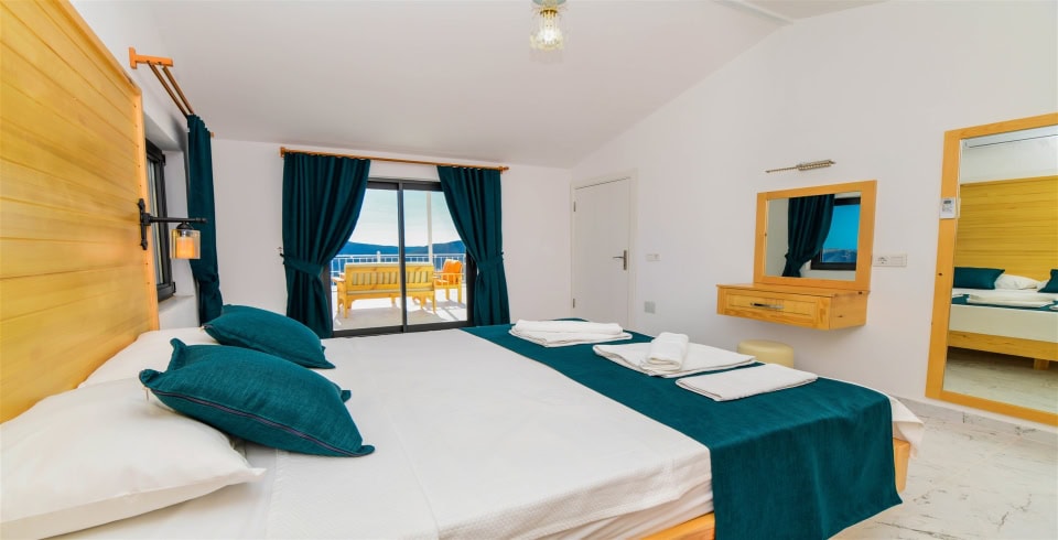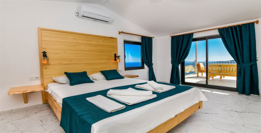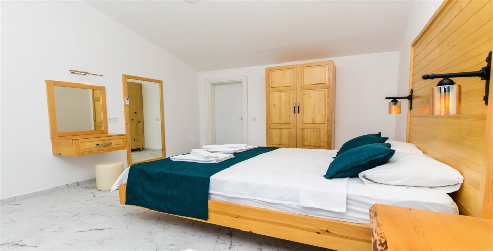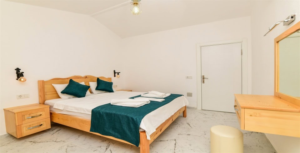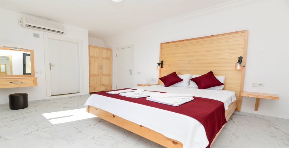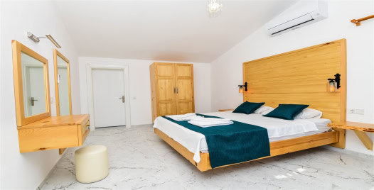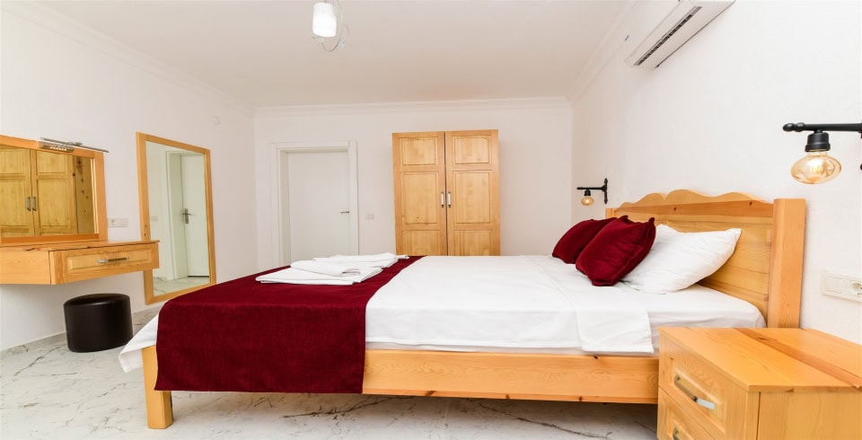 4. Yatak Odası : Çift kişilik yatak, klima, komodin, elbise dolabı, banyo ve tuvalet bulunmaktadır.