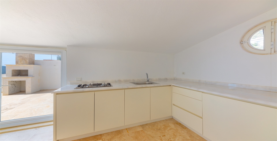 Mutfak: Modern Amerikan mutfakta buz dolabı, bulaşık makinası, kettle, tost makinası, fırın, 4'lü ocak, mikrodalga fırın, kişilik yemek masası, yemek takımları, çatal ve bıçak takımları, tencere ve tava takımları, bardaklar bulunmaktadır. Havuz terasına çıkış yapılabilmektedir.