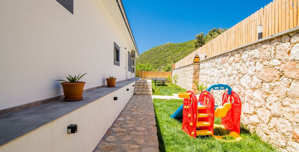 Havuz ve Bahçe: Havuz ve bahçesi korunaklı olup dışarıdan gözükmemektedir. Özel yüzme havuzu, şezlong, şemsiye, oyun parkı, salıncak, yemek masası ve barbekü, masa tenisi bulunmaktadır.