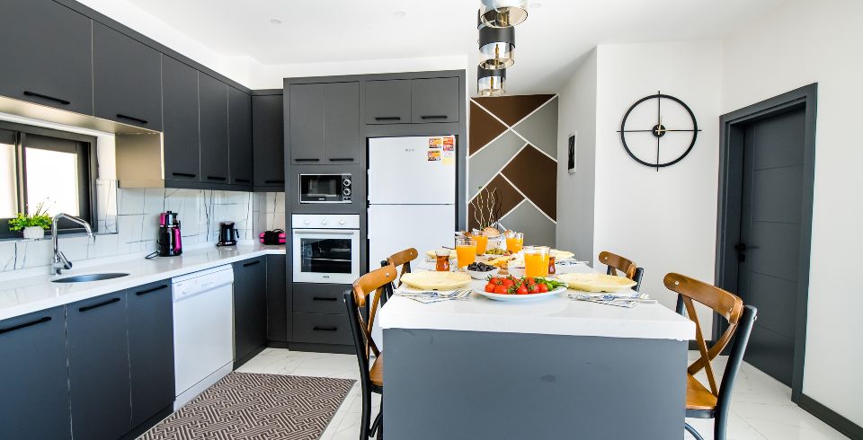Mutfak: Villamızın mutfağında buzdolabı bulaşık makinası, çamaşır makinası, 4'lü ocak, kettle, mikrodalga fırın, yemek takımı bulunmaktadır.