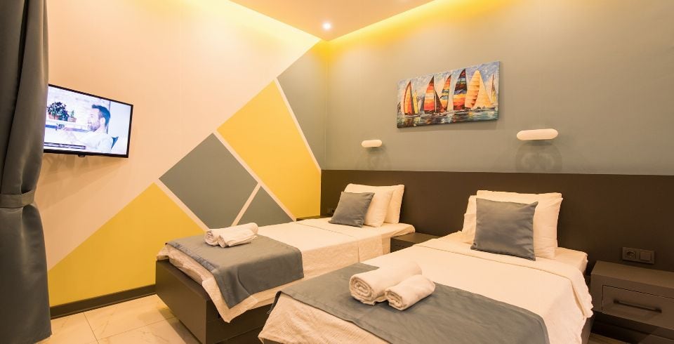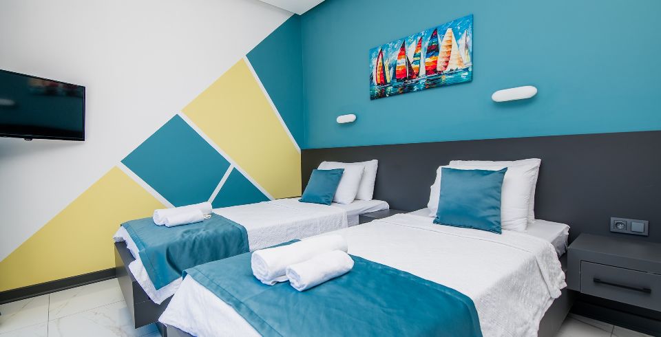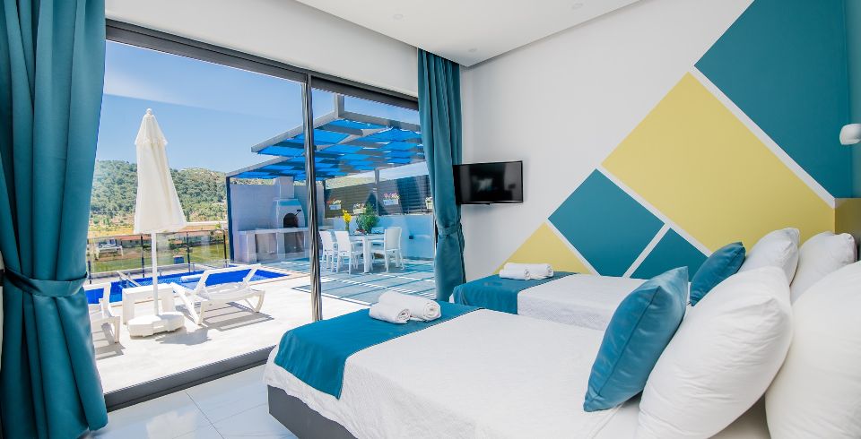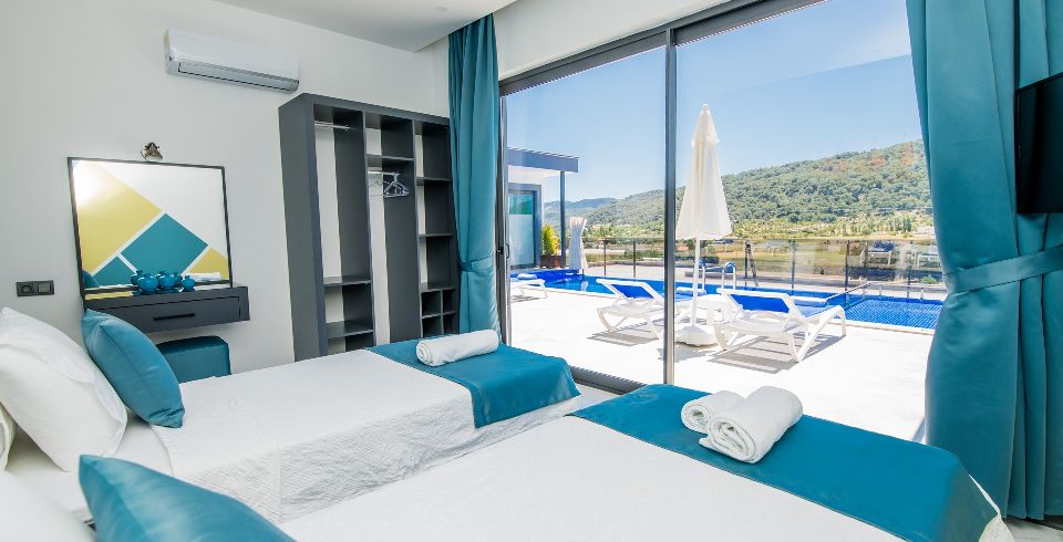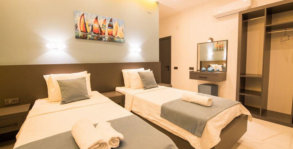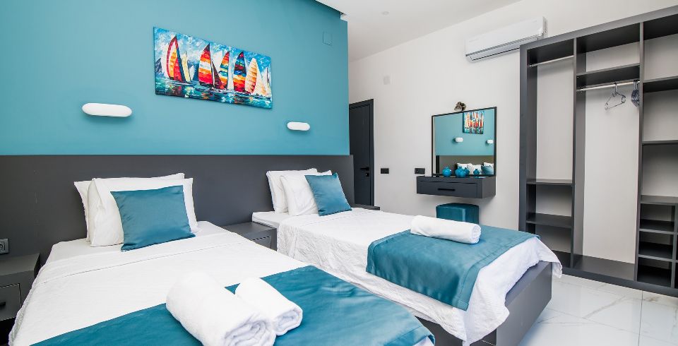 2. Yatak Odası: 2 adet tek kişilik yatak, elbise dolabı, makyaj masası, komodin, klima ve banyo-wc bulunmaktadır.