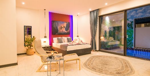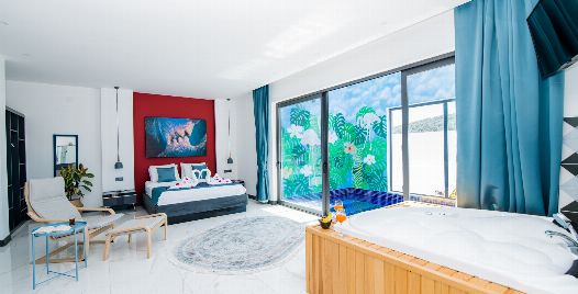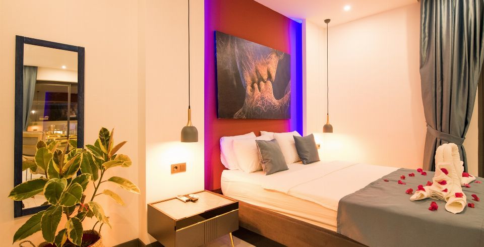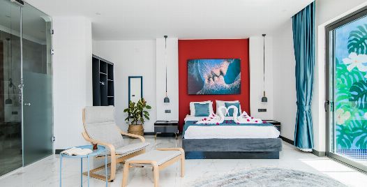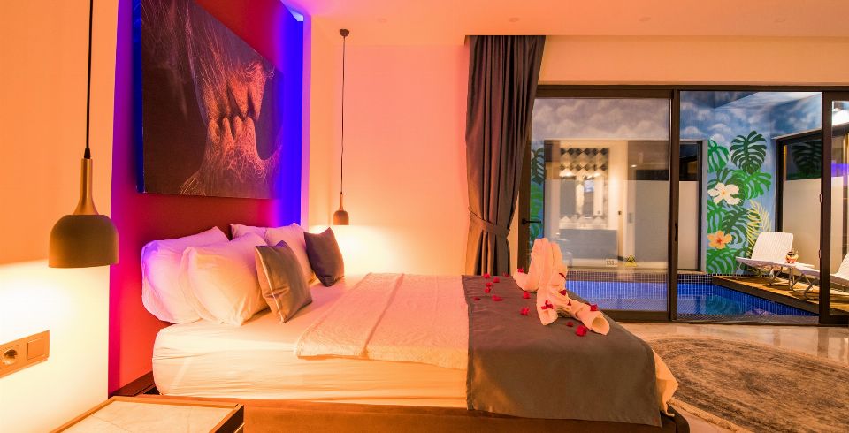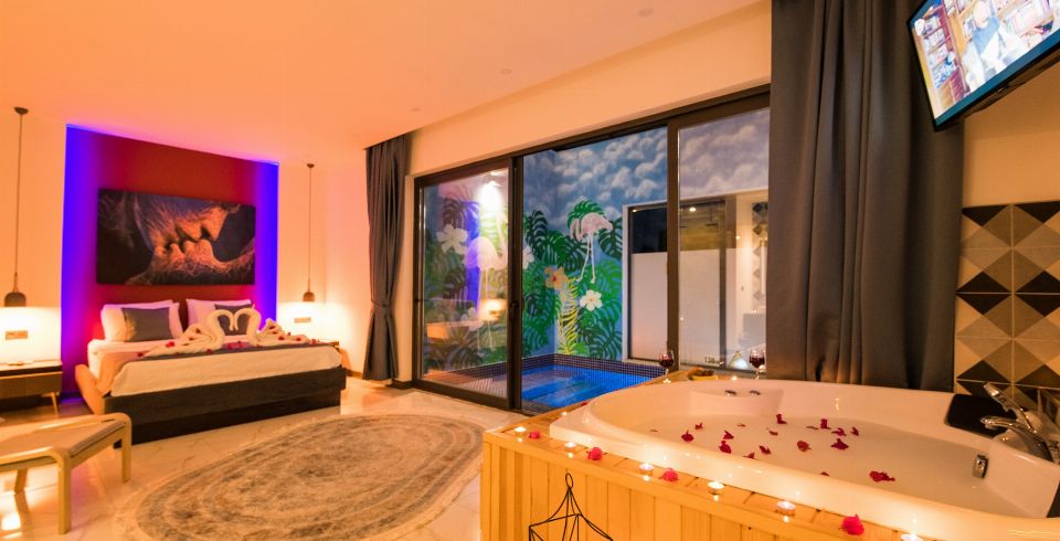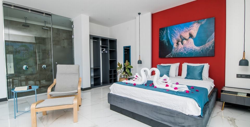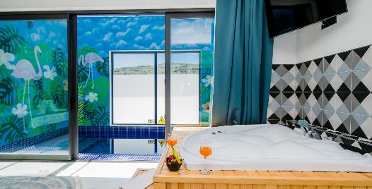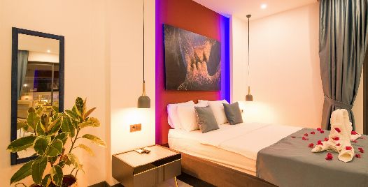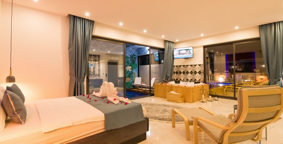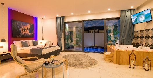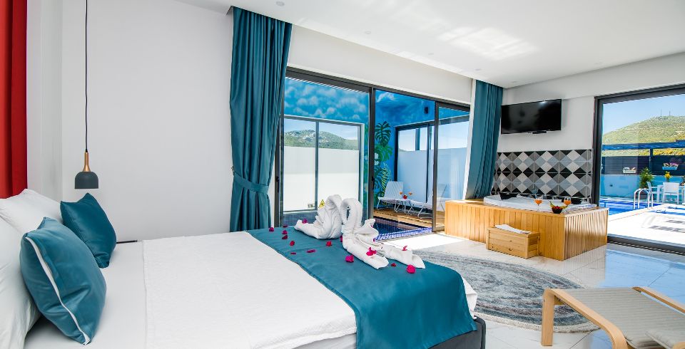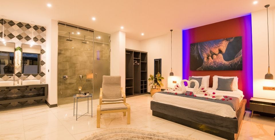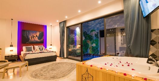 1. Yatak Odası: 1 adet çift kişilik yatak, jakuzi, elbise dolabı, makyaj masası, komodin, klima ve banyo-wc bulunmaktadır.