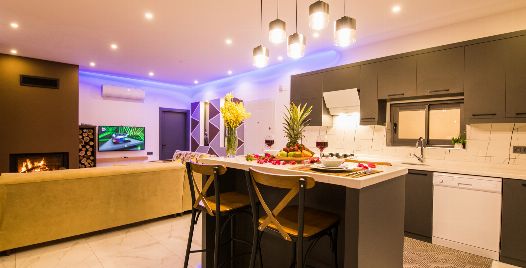 Salon: Villamızda tüm ihtiyaçlarınızı karşılayacak şekilde yeterli mutfak araç gereçleri ve ayrıca salonumuzda TV, oturma grubu, sehpa vb. eşyalar bulunmaktadır.