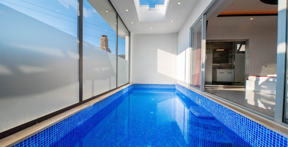1. Yatak Odası : 1 adet çift kişilik yatak, klima, komodin, kapalı havuz, elbise dolabı, makyaj masası, banyo ve lavabo bulunmaktadır.