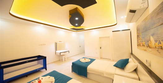 2. Yatak Odası : 2 adet tek kişilik yatak, komodin, klima, elbise dolabı, makyaj masası, banyo ve lavabo bulunmaktadır.