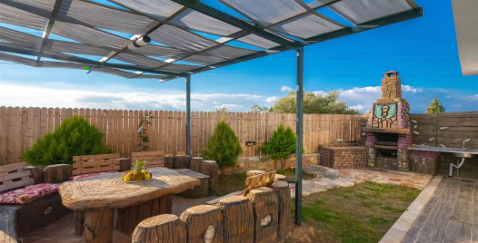 Havuz ve Bahçe : Villamız korunaklı olduğundan dışarıdan kesinlikle görünmemektedir. 1.55 metre sığ özel yüzme havuzunun içinde şezlong bulunan bahçemizde ekstra şezlonglar, şemsiye, yemek masası bulunmaktadır. Hemen yanında barkekü alanı ve oturma gurubu yer almaktadır.