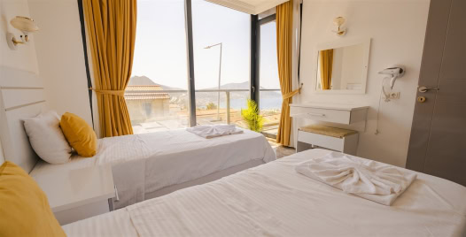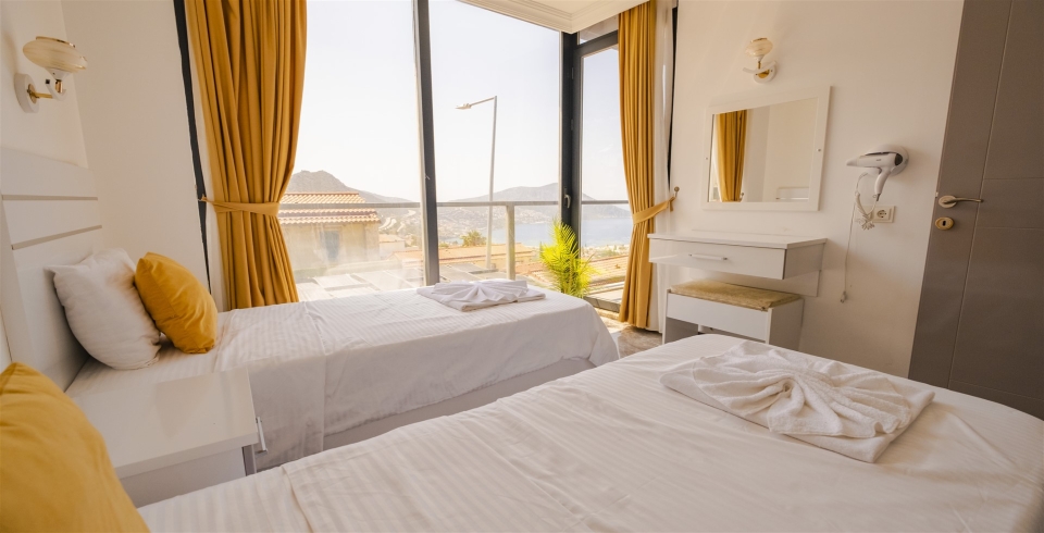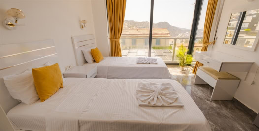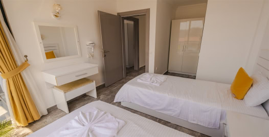 5. Yatak Odası : 2 adet tek kişilik yatak, Komidin, Makyaj masası, Klima, Elbise dolabı, Banyo bulunmaktadır.