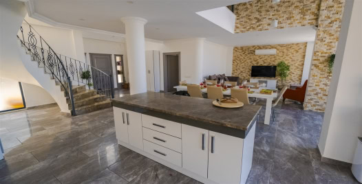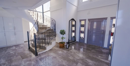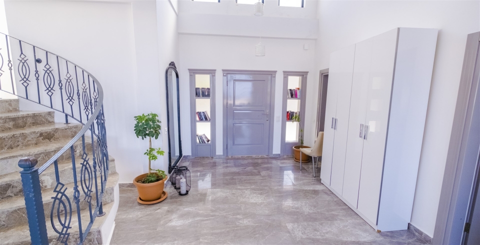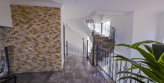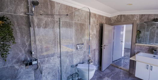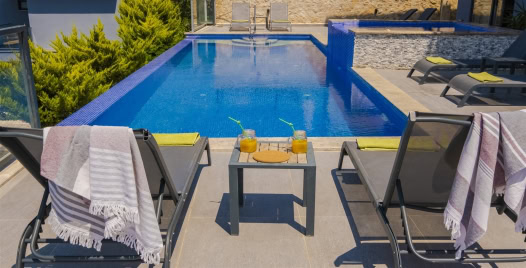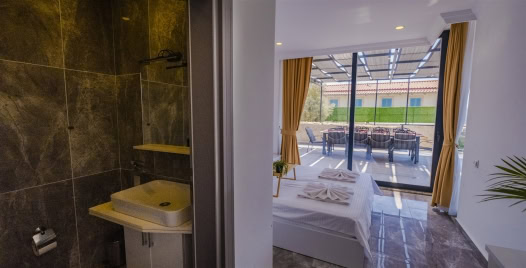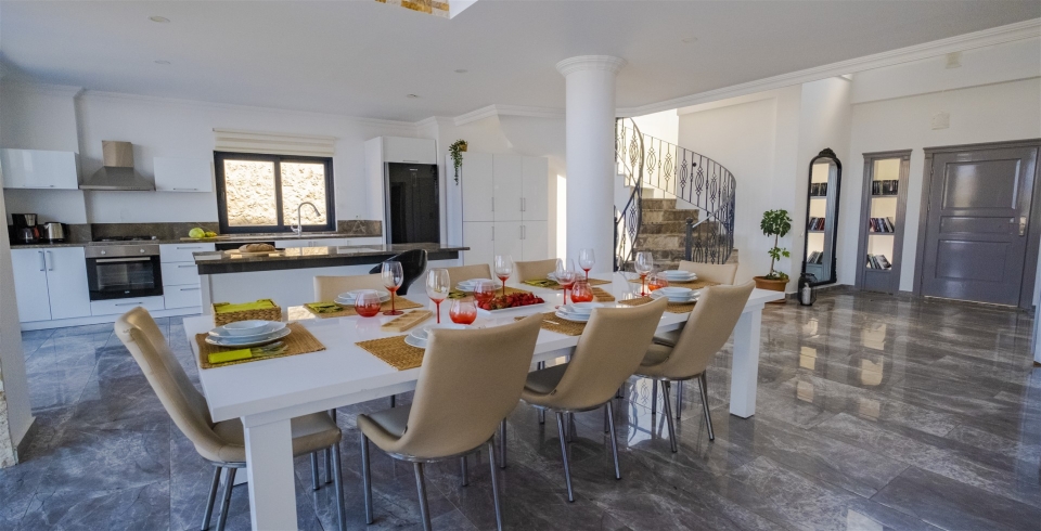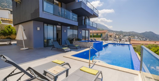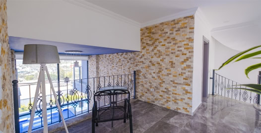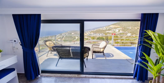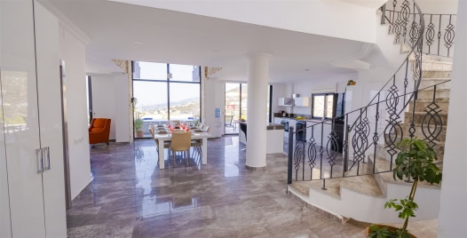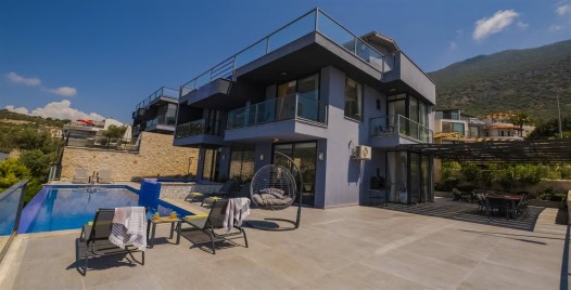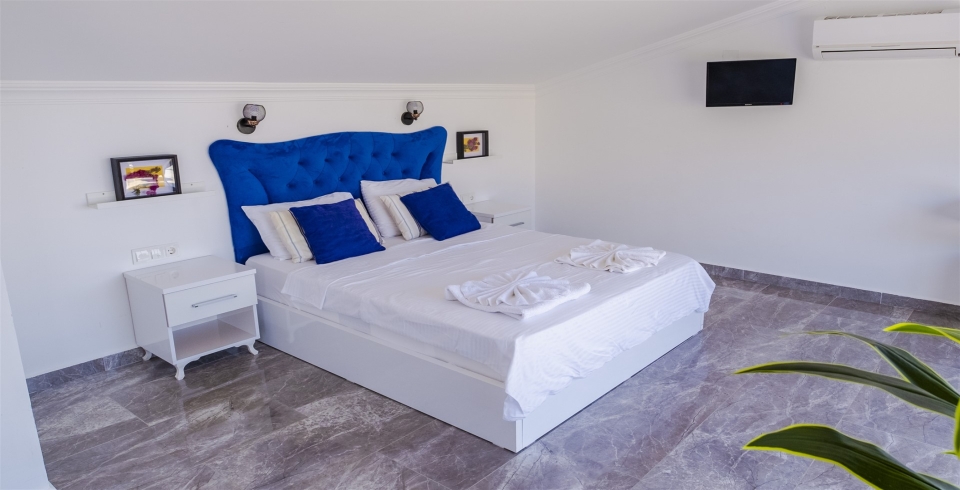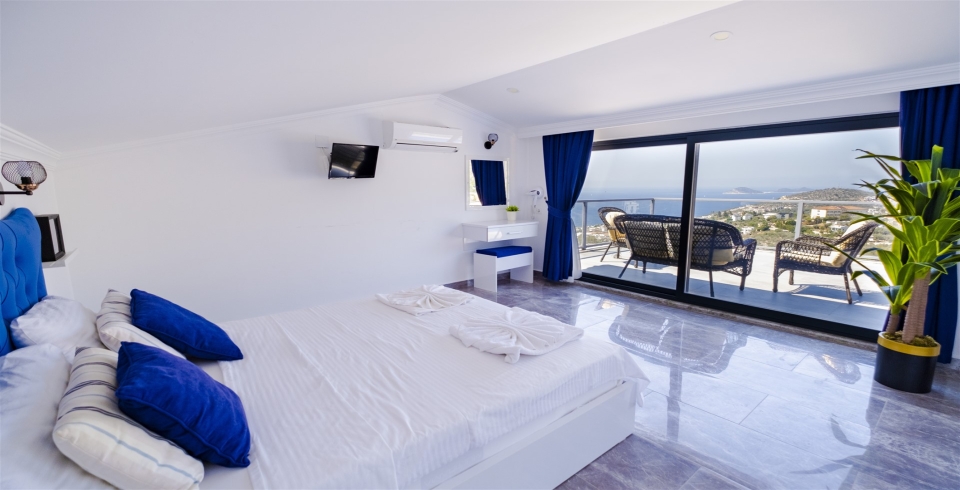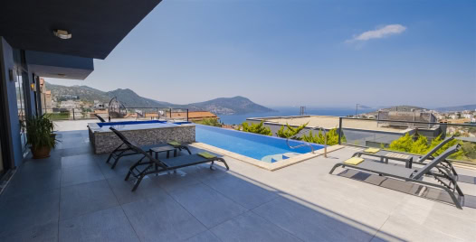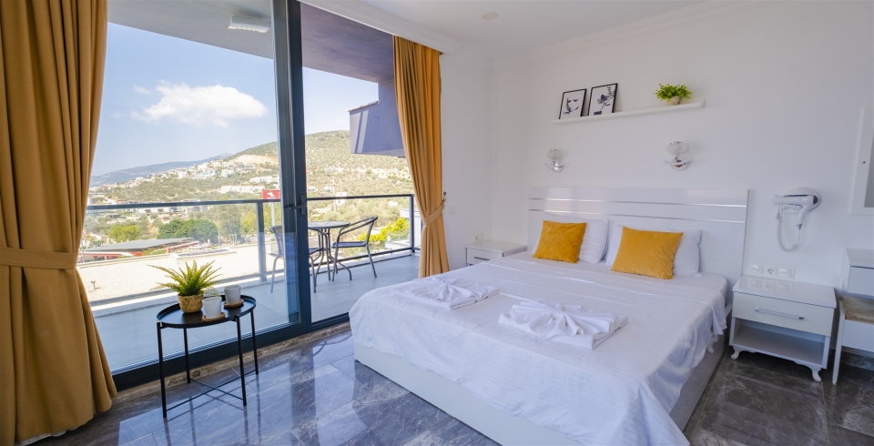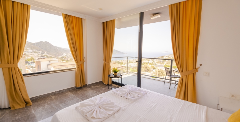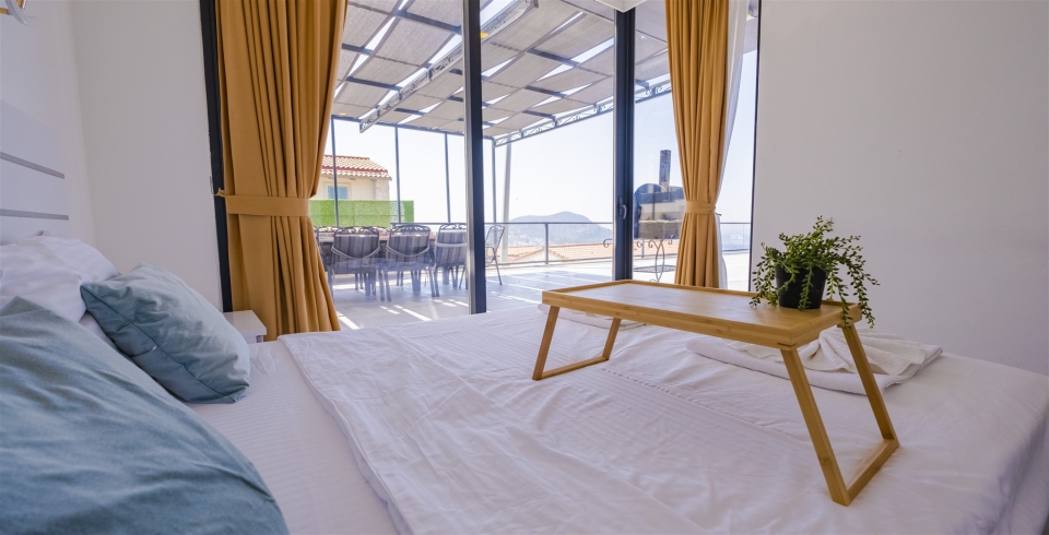 Villa Şelale 1, Kalkan'ın Kızıltaş bölgesinde etkileyici bir mülktür. Villada, biri zemin katta ve dördü üst katlarda olmak üzere 5 adet ebeveyn banyolu yatak odası bulunmaktadır. Mermer ve demirden yapılmış zarif bir spiral merdiven, üst katları zemin kata bağlar. Villanın öne çıkan özelliklerinden biri, çatı terasına açılan, bir dalma havuzu içeren ve muhteşem manzaralar sunan en üst kattaki ana yatak odasıdır. Villanın iç mekanı, aydınlık ve ferah hissettiren açık planlı bir tasarıma sahiptir. Zemin kattaki oturma odası ve mutfak, havuz terasının manzarasını güzel bir şekilde vurgulayan yüksek bir çift pencereden gelen doğal ışıkla doludur. Geniş sürgülü kapılar, sonsuzluk havuzu bulunan cömert bir havuz terasına açılır. Bu teras, dağların ve denizin muhteşem manzaralarını seyrederken barbekü yapmak için mükemmeldir ve yemek yemek, güneşlenmek veya salıncak sandalyesinde dinlenmek için bolca alan sunar.