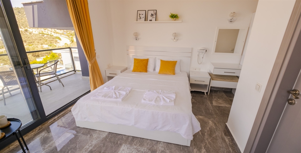3. Yatak Odası : Çift kişilik yatak, Komidin, Makyaj masası, Klima, Elbise dolabı, Banyo, Balkona çıkış bulunmaktadır.