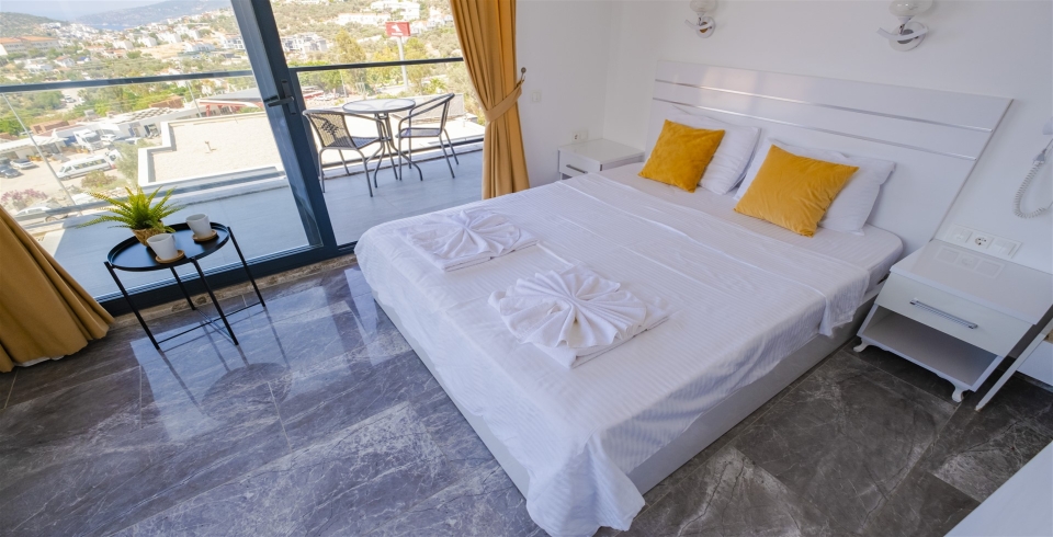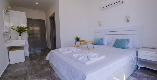 2. Yatak Odası : Çift kişilik yatak, Komidin, Klima, Elbise dolabı, Banyo, Balkona çıkış bulunmaktadır.