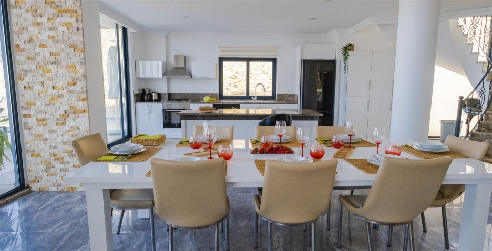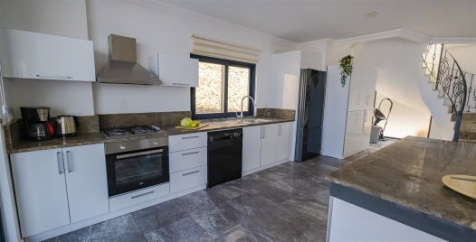 Mutfak: Buz dolabı, Bulaşık makinesi, Çamaşır makinesi, Fırın, 4’lü Ocak (ankastre), Elektrikli su ısıtıcı (Çay makinesi), Yemek takımı, Tava, Tencereler, Çatal bıçak bulunmaktadır.