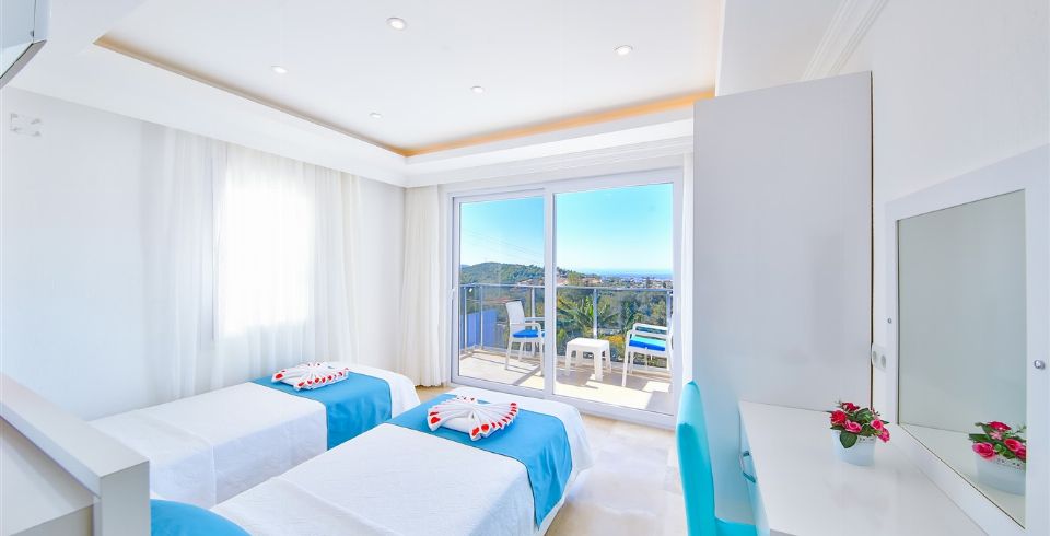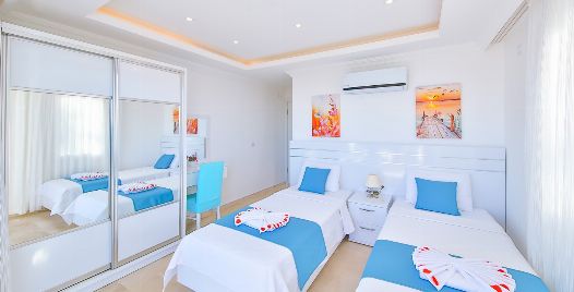 2. Yatak Odası : 2 adet tek kişilik yatak, klima, komodin, elbise dolabı, balkon, banyo ve tuvalet bulunmaktadır. Oda deniz ve doğa manzaralıdır.
