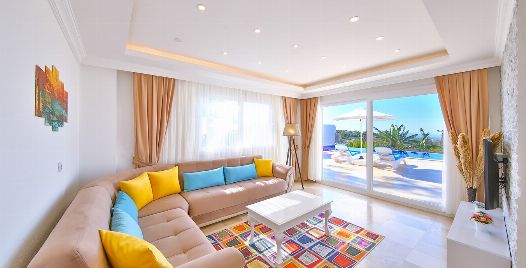 Salon : Kiralık Villamız da DVD, LCD TV, uydu sistemi, oturma gurubu, banyo ve tuvalet bulunur. Klima, Her odada klima mevcuttur.