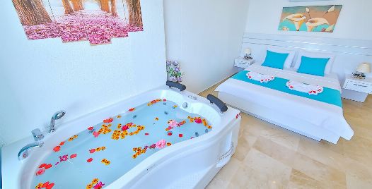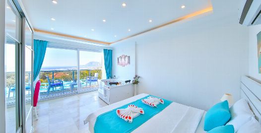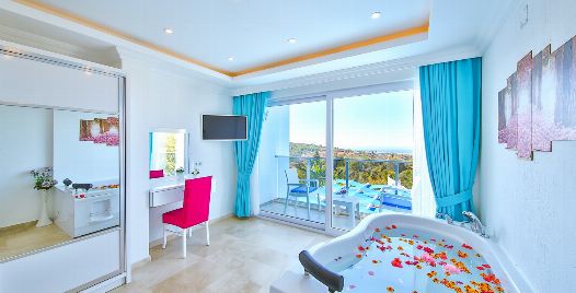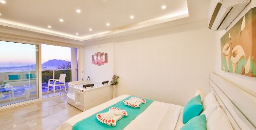 1. Yatak Odası : 1 adet çift kişilik yatak, klima, komodin, elbise dolabı, makyaj masası, berjer, balkon, banyo ve tuvalet, jakuzi bulunmaktadır. Oda deniz ve doğa manzaralıdır.