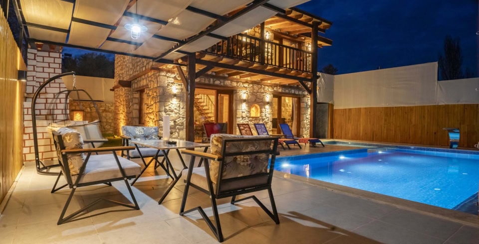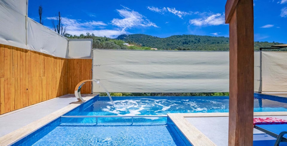 Antalya'nın Kaş ilçesinin Sarıbelen mevkiinde, doğayla iç içe bir tatil deneyimi sunan Villa Senir Sarıbelen, özellikle çekirdek aileler ve balayı çiftleri için mükemmel bir seçimdir. Özel havuz ve lüks jakuzisi ile konforlu bir tatil geçirirken, geniş bahçe alanı ve çocuk oyun alanı sayesinde sevdiklerinizle keyifli anlar yaşayabilirsiniz.