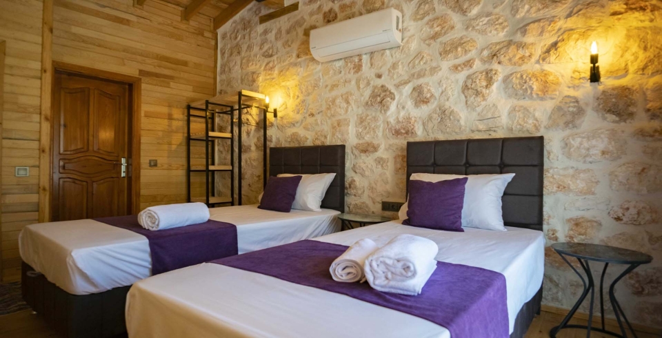 2. Yatak Odası: 2 adet tek kişilik yatak, klima, komodin, elbise dolabı, makyaj masası banyo ve tuvalet bulunmaktadır.