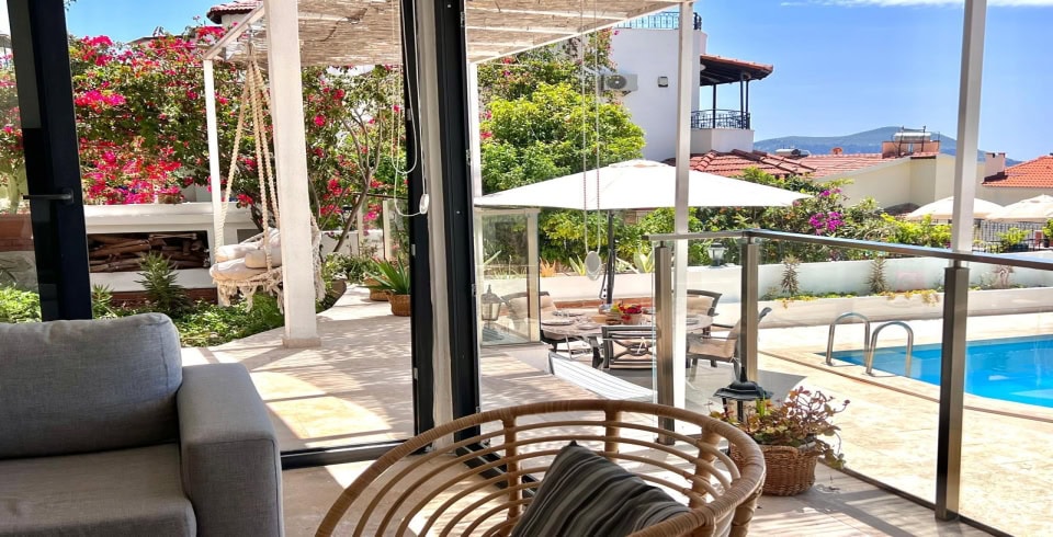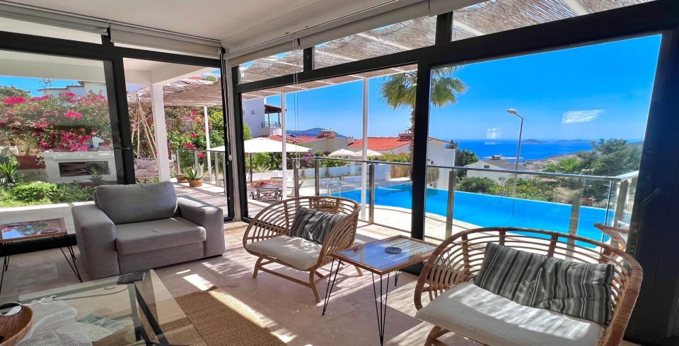 Kiralık yazlık villamız Kalkan bölgesinde konumlanmıştır. 3 yatak odalı 6 kişilik kapasiteye sahiptir. Müstakil villamızın her odasından deniz manzarası hakimdir. Özel yüzme havuzu ve havuz terası oldukça şık tasarıma sahiptir. Kalabalık aileler özel olarak rahatlıkla tatil geçirebilirsiniz. Villa Şerefe merkeze oldukça yakın olup araçsızda uygundur. Villamızın tüm odalarında tuvalet banyo bulunmaktadır.