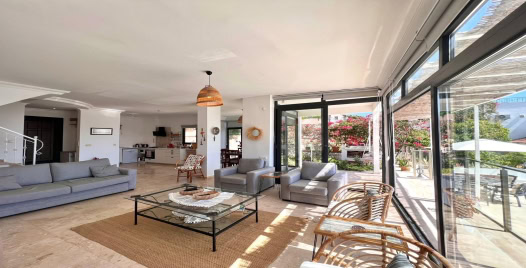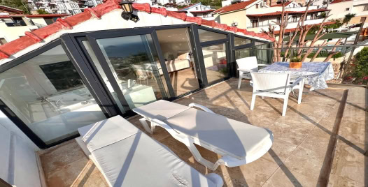 Salon : Salonda klima uydu alıcı, TV, oturma grubu, lavabo yer almaktadır. Salon havuz katındadır. En üst katta dinlenmek ve güneşlenmek için çok geniş bir seyir terası daha vardır. Bu alanda da oturma gurubu ,masa ve sandalye bulunur.