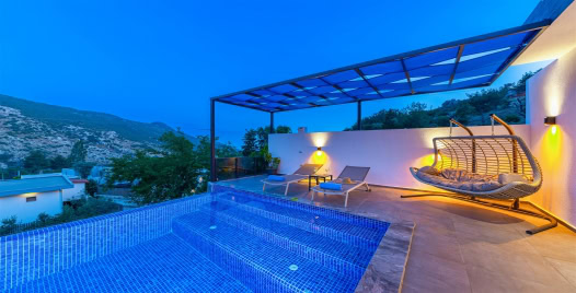 Doğa içerisinde bulunan kiralık villa seçeneklerimizden bir tanesi olan Villa Serengeti , konum olarak Kalkan'ın İslamlar mevkiinde bulunmaktadır. 2 adet yatak odası bulunan jakuzili kiralık villamız 4 kişi konaklama kapasitesine sahiptir. Çekirdek aileler ve balayı çiftlerinin huzur dolu bir villa tatili geçirebileceği muhafazakar kiralık villamız modern ve şık bir tasarıma sahiptir. Kalabalıktan ve yabancı gözlerden uzakta, doğa ile iç içe, kuş cıvıltıları eşliğinde keyifli zamanlar geçirebileceğiniz yazlık kiralık villamızın bahçesinde kendisine ait özel yüzme havuzu, şezlonglar, salıncak, masa tenisi, barbekü ve yemek masası bulunmaktadır.
