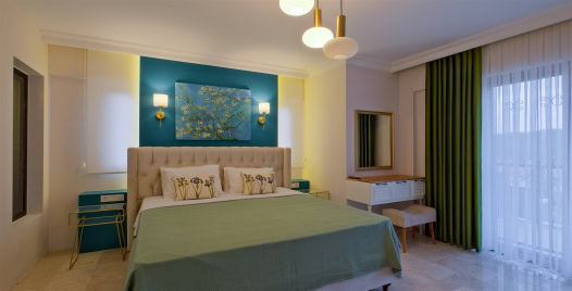 2.Yatak Odası: Çift kişilik yatak,TV, klima, elbise dolabı, makyaj masası bulunmaktadır.