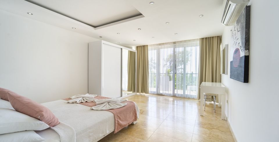 4. Yatak Odası : Çift kişilik yatak, klima, komodin, makyaj masası, elbise dolabı, banyo ve lavabo bulunmaktadır. Balkon bulunmaktadır.