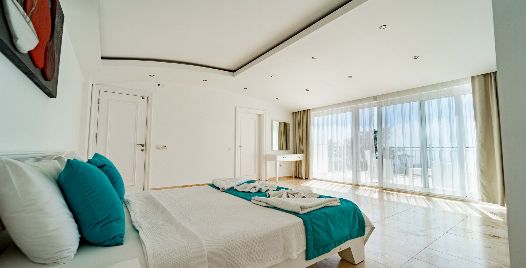 3. Yatak Odası : Çift kişilik yatak, klima, komodin, makyaj masası, elbise dolabı, banyo ve lavabo bulunmaktadır. Balkon bulunmaktadır.