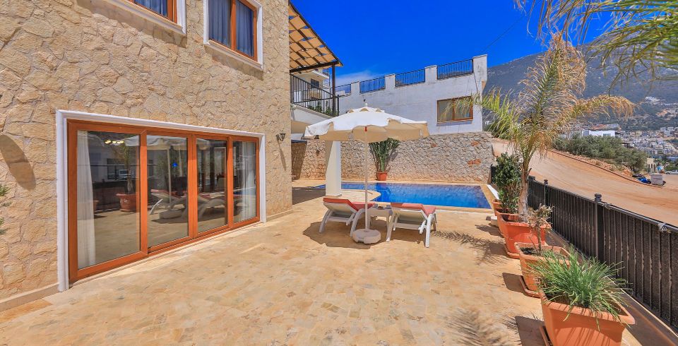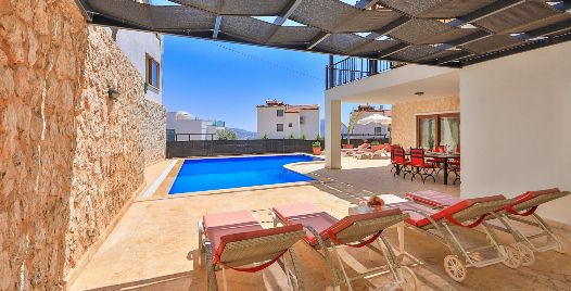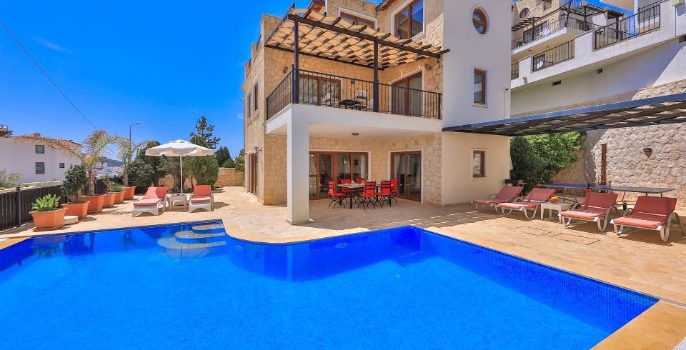 Kalkan Ortaalan mevkisin de bulunan 3 yatak odalı 6 kişilik jakuzili kiralık yazlık villamız muhteşem deniz ve kalkan manzarasına sahiptir. Denize ve Kalkan merkeze yakın olan villamız alış veriş merkezlerine de ulaşım olarak kolay bir noktadadır. Şık dekorasyonu ve konforuyla Lüks kiralık villamızdır.