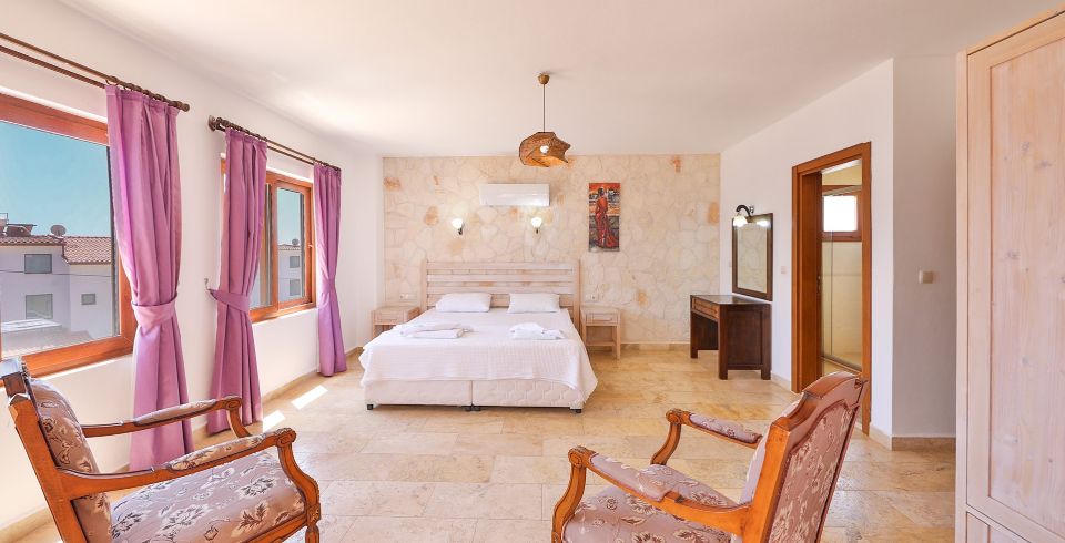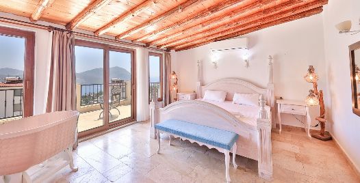Yatak Odası 3 : Deniz manzaralı en süite odada komodin, klima, makyaj masası, banyo ve tuvalet bulunmaktadır . Banyosunda Jakuzi mevcuttur.