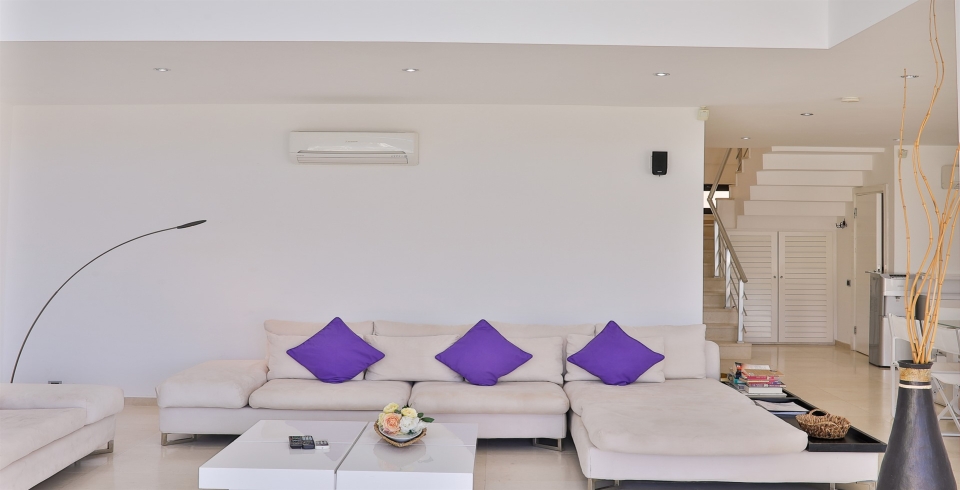Salon : Oturma grubu, orta sehpa, TV, TV ünitesi, klima, 8 kişilik yemek ve sandalyeler, WC, havuz katına çıkış bulunmaktadır.