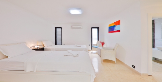 Yatak odalarından biri çift kişilik jakuzi banyo ile donatılmıştır. Diğer üç odada ise en-suite duş banyoları bulunmaktadır. Her odada klima, gardırop ve balkon ya da pencere ile manzara erişimi sağlanmıştır.