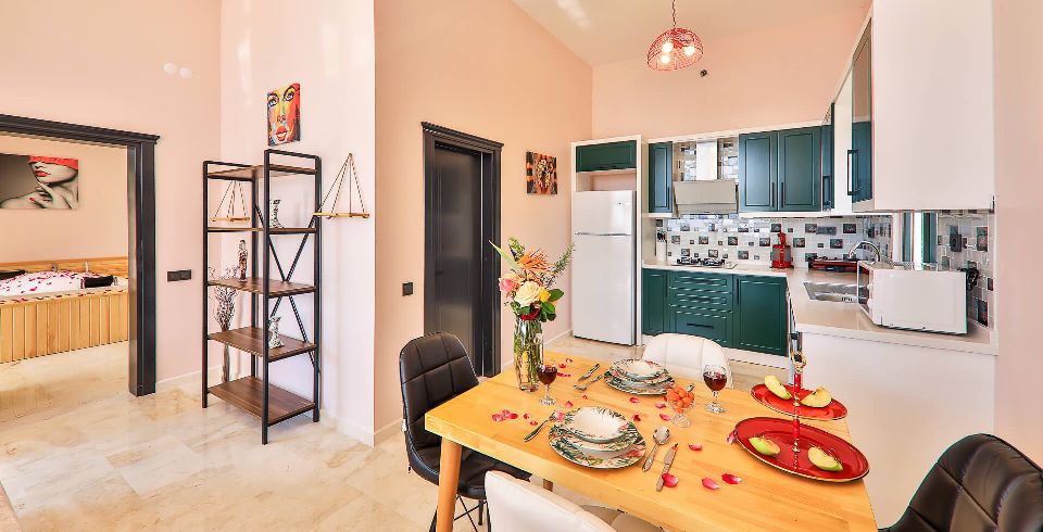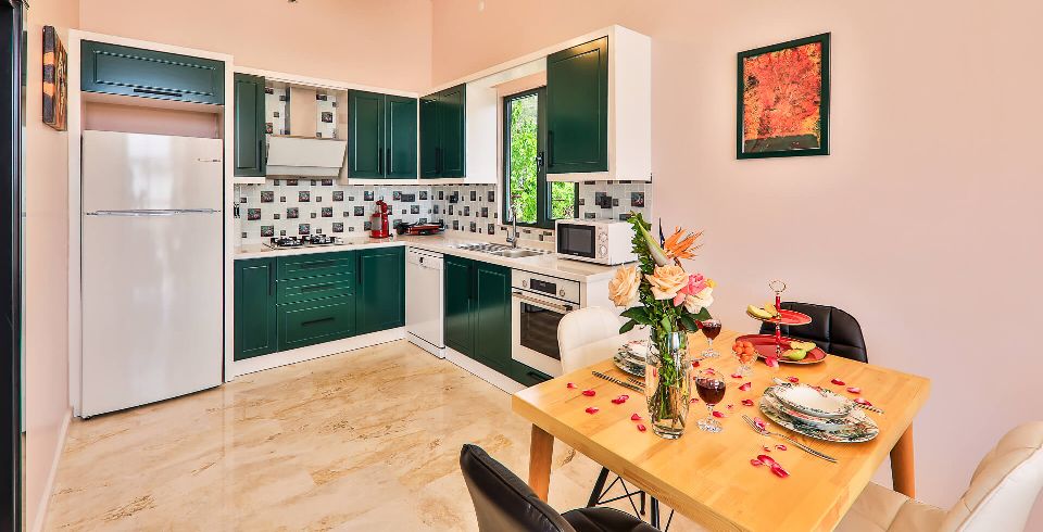 Mutfak : Siz de yemeği yemek için değil de zevkiniz için ön planda tutuyorsanız bu villamızın mutfağı tam da size göre! İçerisinde buzdolabı, bulaşık makinesi, çamaşır makinesi, kurutma makinesi, fırın, ankastre ocak, mikro dalga, su ısıtıcı, tost makinesi, ekmek kızartma makinesi ve mutfak araç ve gereçleri eksiksiz bulunmaktadır.