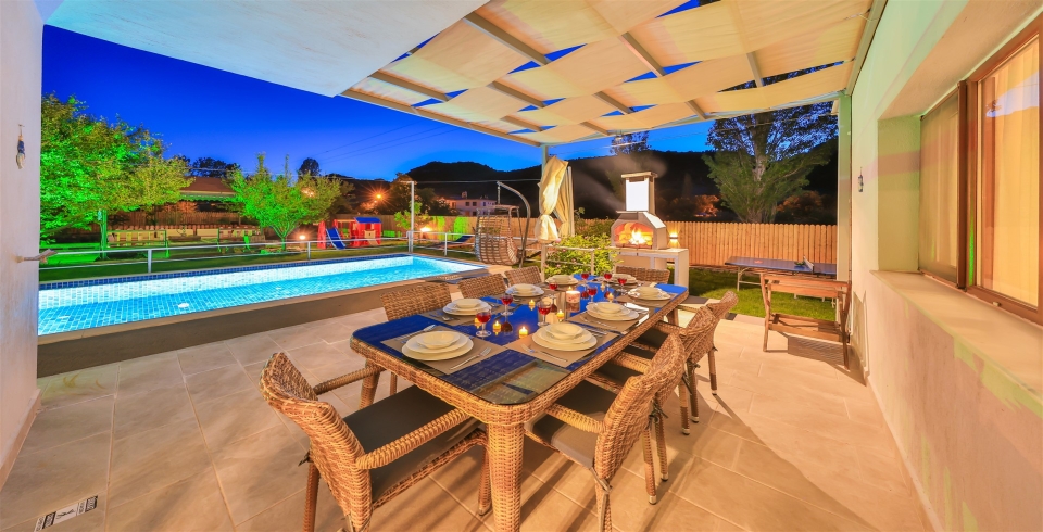 Villa seyret Kaş Gökçeören bölgesinde doğa manzarasına sahip 4 Yatak Odalı 8 Kişilik Özel Yüzme havuzlu muhafazakar olup yeni ve modern bir villamızdır. Geniş aile ve arkadaş gurupları için çocuklu aileler için geniş havuz terasında ve geniş bahçe alanında sessiz ve sakin rahat bir tatil arzulayan misafirlerimiz için bu villa seçeneğimiz son derece yerinde bir karar olacaktır. TV sisteminde netfilix ile ailenizle veya sevgilinizle filim izlemenin keyfini çıkarabilirsiniz. Villamızın salon bölümünden havuz terasına çıkış bulunmaktadır.