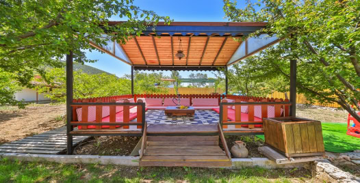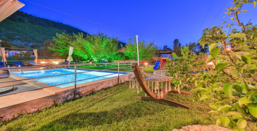 Bahçe : Bahçe içerisinde özel yüzme havuzu, 6 kişilik yemek masası 8 adet şezlong, bahçe mobilyaları, salıncak, kamelya barbekü bulunmaktadır.