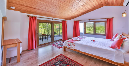 3. Yatak Odası : 1. katta 1 adet çift kişilik yatak, klima, komodin, elbise dolabı, makyaj masası, banyo ve tuvalet bulunmaktadır.