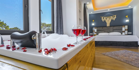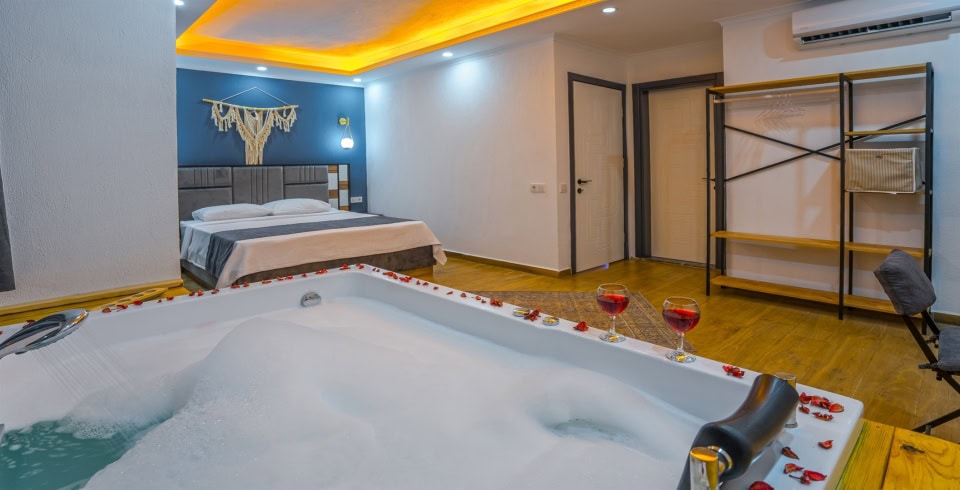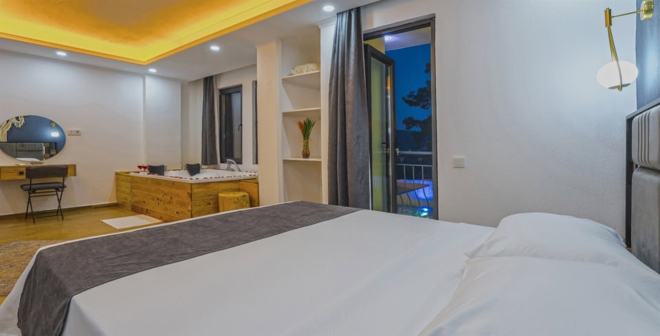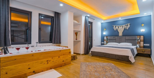 1. Yatak Odası : 1 adet çift kişilik yatak , elbise dolabı makyaj masası , komodin , klima ,jakuzi banyo ve tuvalet bulunmaktadır.
