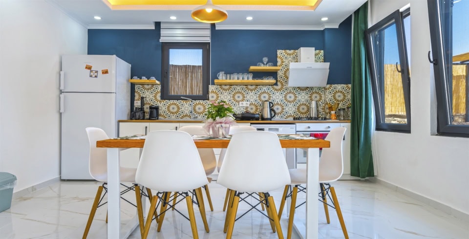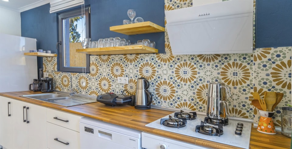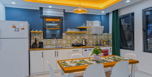 Mutfak : Amerikan Mutfak , buzdolabı , çamaşır makinesi , bulaşık makinesi , ankastre fırın , mikrodalga fırın , 4' lü ocak , tost makinesi , elektrikli su ısıtıcısı, yemek takımı , çatal bıçak seti , tavalar , tencereler , bardaklar bulunmaktadır.
