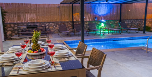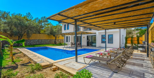 Kiralık yazlık villamız Patara bölgesinde konumlanmıştır. 3 yatak odalı 6 kişilik konaklama kapasitesine sahiptir. Muhteşem doğa manzarasına sahip olup özel yüzme havuzu ve havuz terası korunaklı muhafazakar aileler uygundur. Geniş bir havuz terası olan bu villamız geniş aileler ve arkadaş grupları için gayet ideal bir konaklama tercihidir imkânı sunmaktadır.