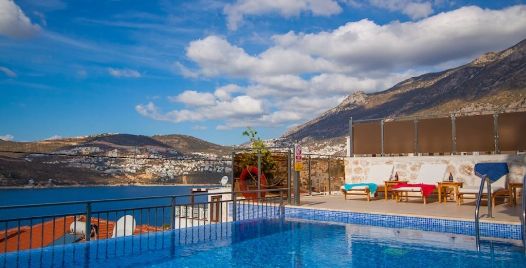 Kalkan kışla mevkisin de bulunan deniz ve kalkan manzarasına sahip 4 yatak odalı 8 kişilik kiralık yazlık villamız denize ve marketlere yürüme mesafesinde bulunmaktadır. Muhteşem mimarisi ve kullanılan eşyaların kalitesi ile göz kamaştıran villamız sezen sizi ve sevdiklerinizi unutulmaz bir tatil geçirmenizi sağlamaktadır. Havuz ve Havuz terasının harika manzarasında akşam üstü gün batımını izlerken kahvenizi yudumlamanız eşsiz bir keyif verecektir.