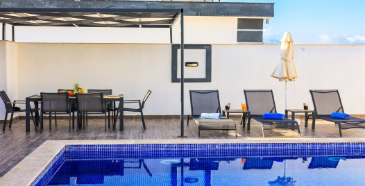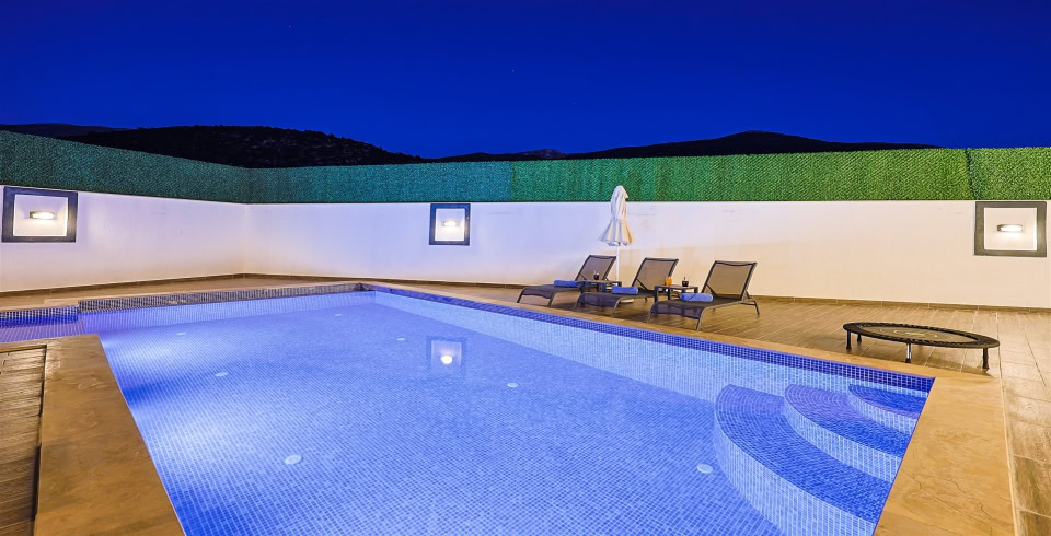 Dış özel yüzme havuzuna entegre sığ havuz bulunmaktadır. Muhafazakar balayı çiftleri ve çekirdek aileler rahatlıkla tercih edebilirler. Havuz terasında muhteşem çam ağaçların karşıladığı doğa içerisinde sessiz ve keyifli bir tatil için Villa Kavun 'u tercih edebilirsiniz.
