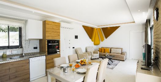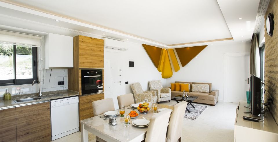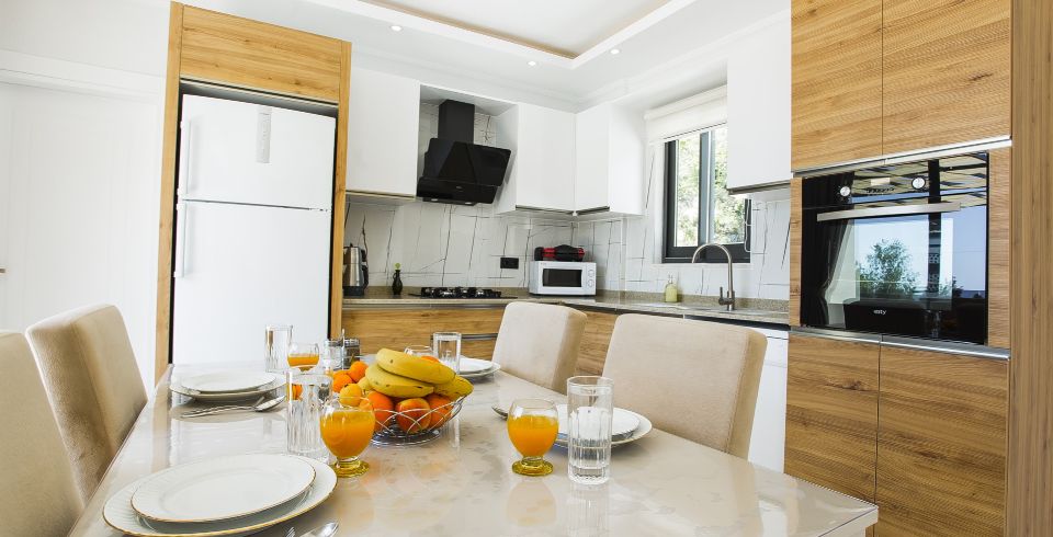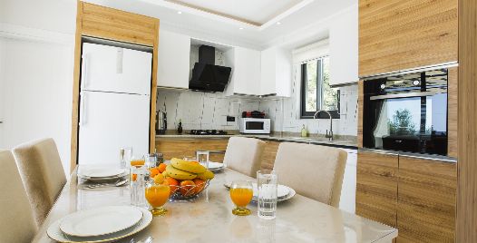 Mutfak : Villamızın geniş Amerikan mutfağı ile sizlere kendi evinizin mutfağı gibi hissettirecek. Ayrıca mutfakta klima, bulaşık makinası, buzdolabı, çamaşır makinası, mikrodalga fırın, tost makinası, ekmek kızartma, su ısıtıcısı, fırın, 4`lü ocak seti ve 4 kişilik geniş yemek masası ile tava tencere vb. mutfak araç gereçlerini kullanma fırsatını sizlere sunuyoruz.