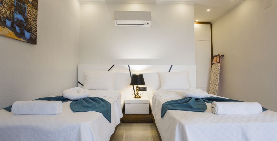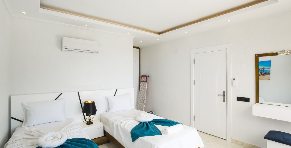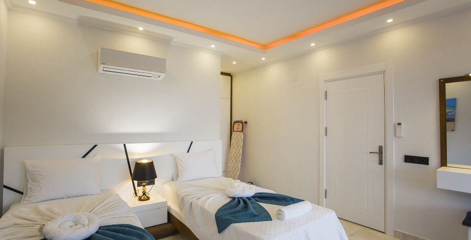 2. Yatak Odası : 2 adet tek kişilik yatak, klima, elbise dolabı, makyaj masası, komodin, banyo ve lavabo bulunmaktadır.