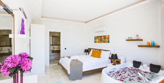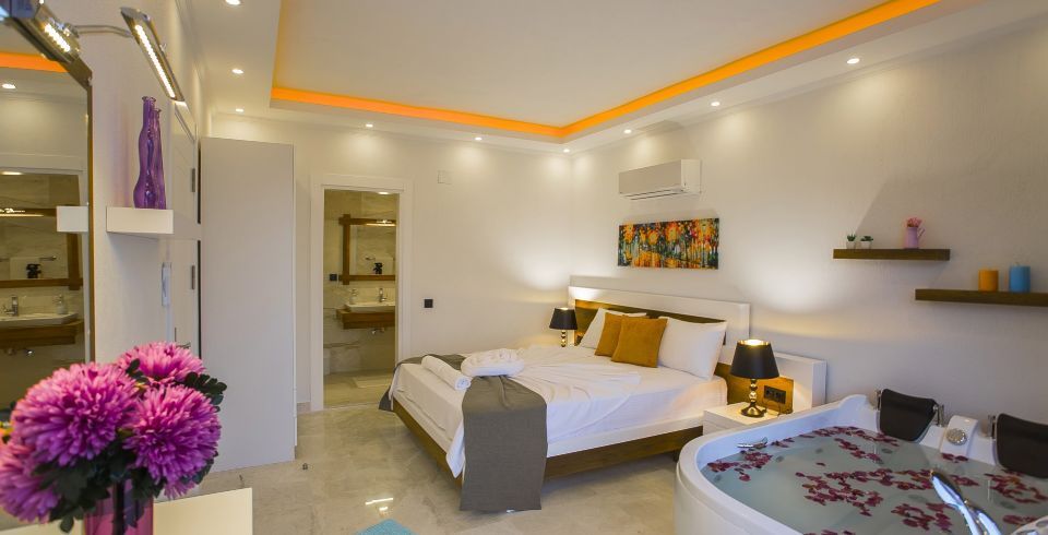 1. Yatak Odası : 1 adet çift kişilik yatak, televizyon, klima, jakuzi, elbise dolabı, makyaj masası, banyo ve lavabo bulunmaktadır.
