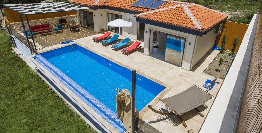Bahçe : Villamızın bahçesinde özel yüzme havuzu, güneşlenmeniz için 4 adet şezlong, güneşlenme terası, 4 kişilik masa, oturma grubu, mangal keyfiniz için barbekü, güneş şemsiyesi bulunmaktadır.