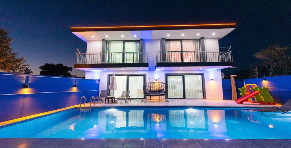 Havuz ve Bahçe : Özel yüzme havuzu bulunan villamızın havuz terasında şemsiye, şezlong, barbekü, pergole, oturma yeri, yemek masası ve sandalyeler bulunmaktadır.