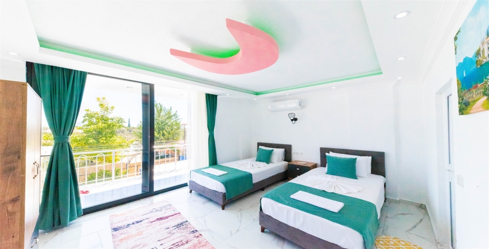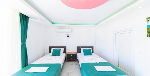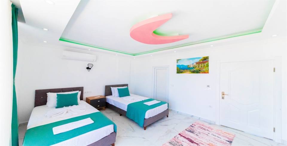 2. Yatak Odası : 2 adet tek kişilik yatak, klima, elbise dolabı, makyaj masası, komodin, banyo ve WC bulunmaktadır.