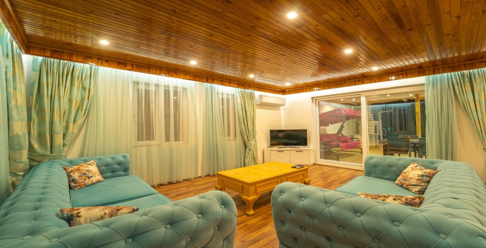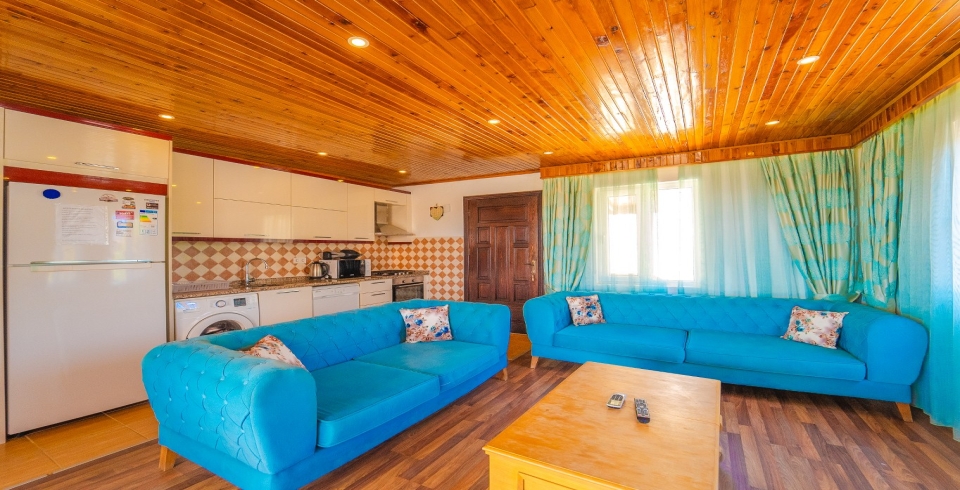 Salon : Villamızın salonunda oturma grubu, tv, internet, klima, yemek masası, sehpa bulunmaktadır.