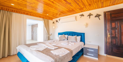 1. Yatak Odası : 1 adet çift kişilik yatak, klima, komodin, makyaj masası, ortak banyo ve lavabo bulunmaktadır.