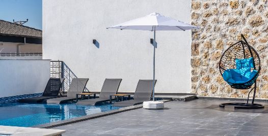 Havuz ve Bahçe: Havuz ve bahçesi korunaklı olup dışarıdan gözükmemektedir. Özel yüzme havuzu, şezlong, şemsiye, salıncak, yemek masası ve barbekü bulunmaktadır.