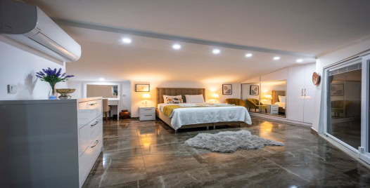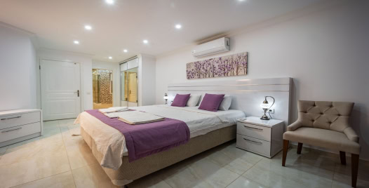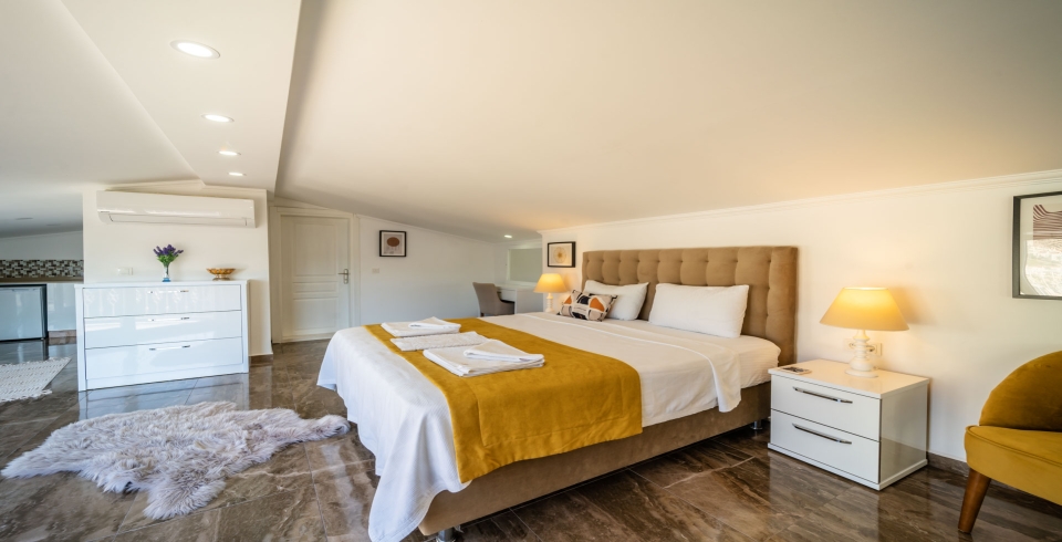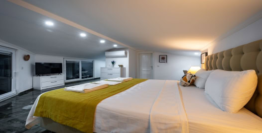 2. Yatak Odası : 1 adet çift kişilik yatak,klima, makyaj masası, klima komodin ve elbise dolabı, banyo ve tuvalet bulunmaktadır.